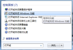 另外一个方法是:先按一下 “Windows 键”,然后输入 “打开或者关闭 Windows 功能”;事实上,只要输入 “打开或” 这三个字的时候,已经可以在 Windows 的 “开始菜单” 中看到 “打开或关闭 Windows 功能” 的链接了: