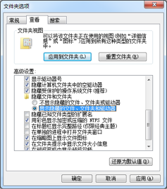 现在我们要选择 “索引位置”。在此之前,我们要先修改一下 Windows 的文件夹显示选项。在开始菜单中点击 “计算机”,按一下 “Alt” 键,就可以看到菜单栏,选择 “工具”“文件夹选项”,然后在 “查看” 标签中,找到 “隐藏文件和文件夹”,选中第二个选项:“显示隐藏的文件、文件夹和驱动器”。