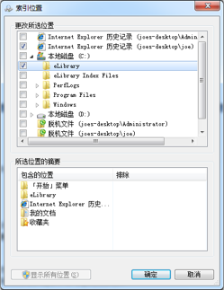 现在,回到 “索引选项” 对话框中,点击 “修改(M)” 按钮。而后在 “索引位置” 对话框中选中 “eLibrary” 目录。